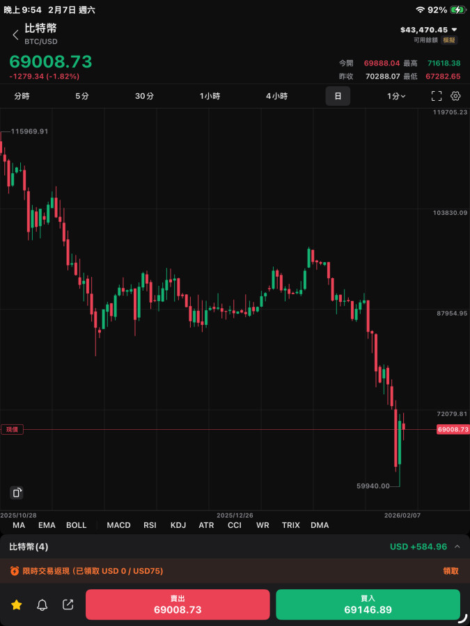 這行情要我看到八成也是準備追下去做多, 但回撤200刀, 我大概只要回撤個50刀我就爆了, 所以只能說幸運躲過, 看來以後禮拜四晚上美股開盤後得趕快結單, 別進來跟命運賭機會!