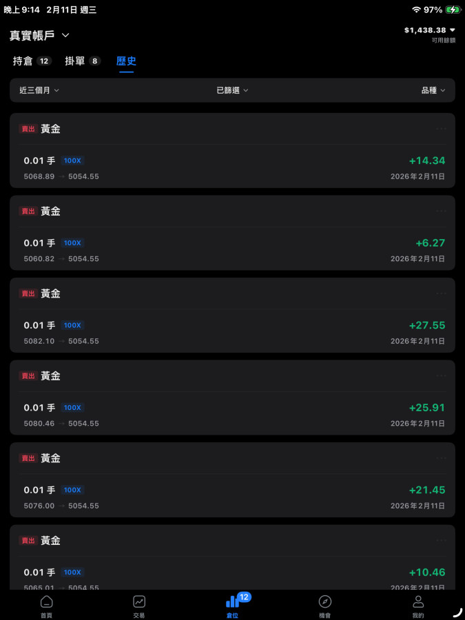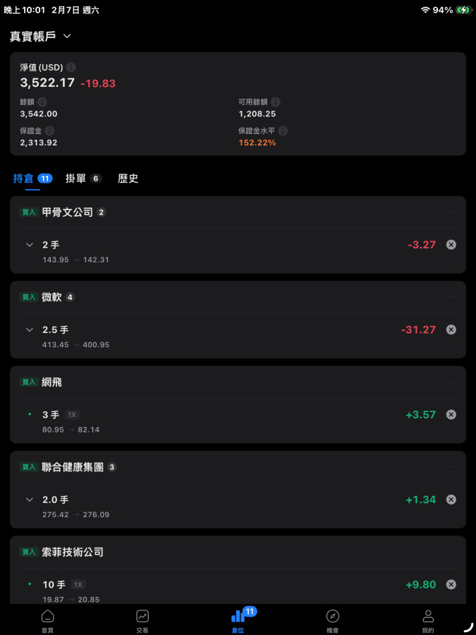 這對我這點資金來說有點難,例如2/13早上我身上只剩300刀的自由現金,美股大概還有2000刀(未開市不能交易),只能靠螞蟻搬運法+秒進秒出剝頭皮了。