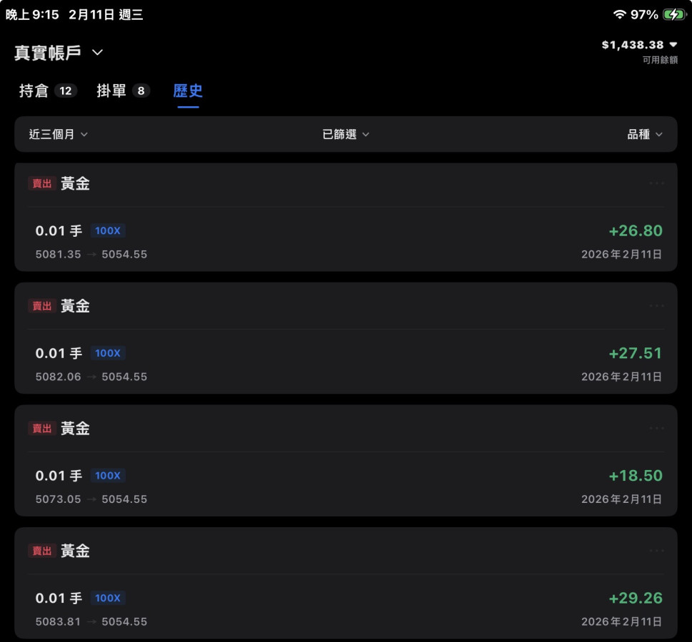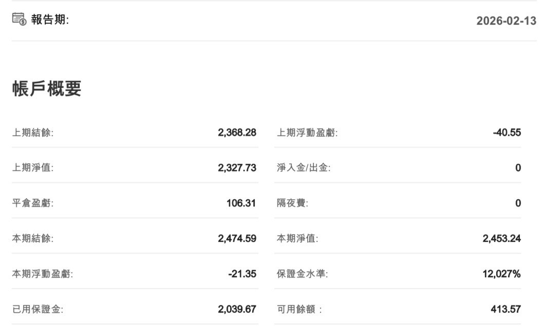 有時候當天的交易太多單或是想精確計算賺或賠了多少,我會向平台申請當日帳戶報告(免費)。他們會立即派發一份PDF的總表與水單,水單我就不展現了,我分享一下總表。