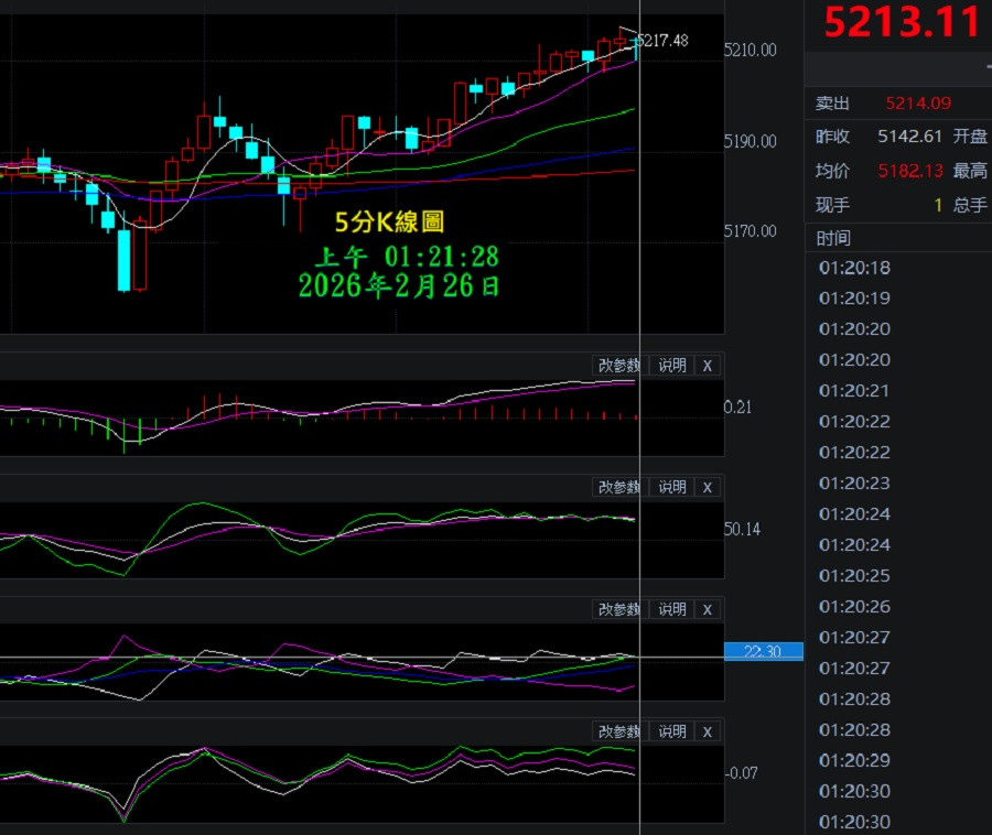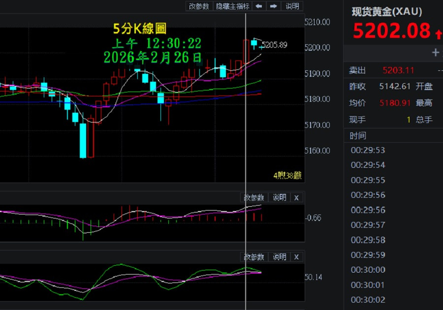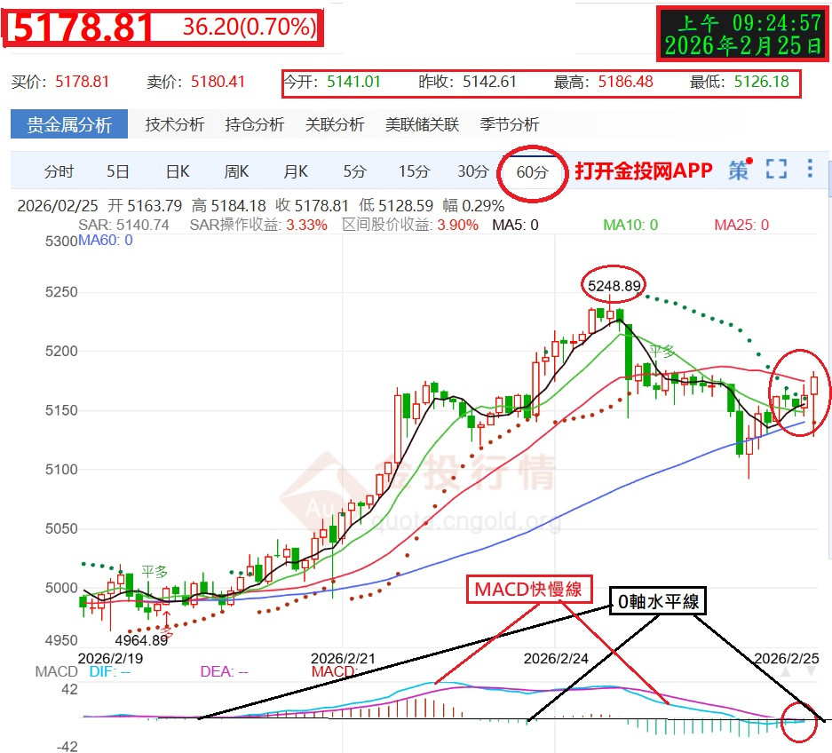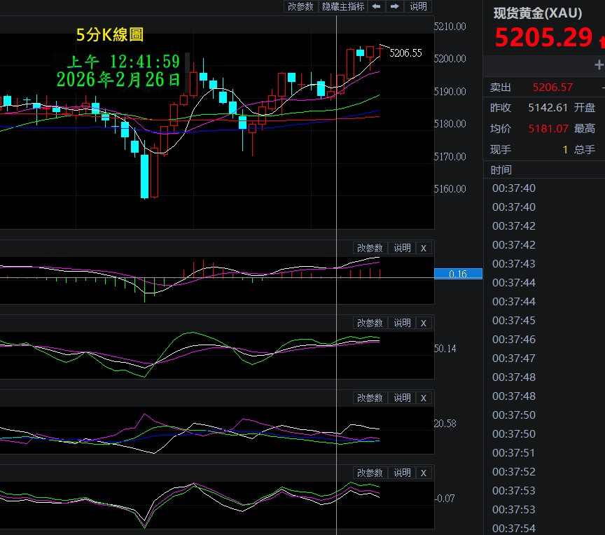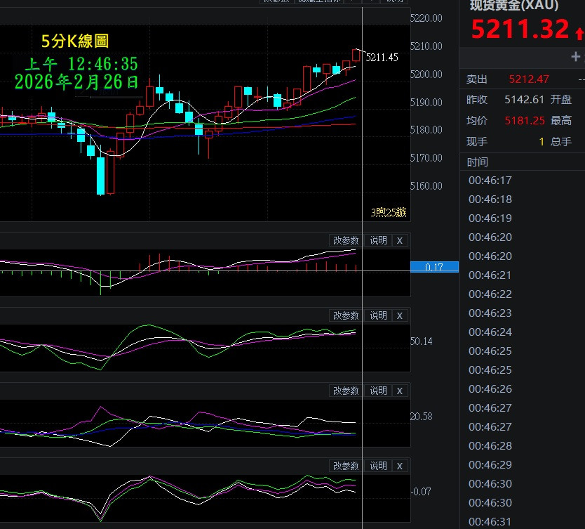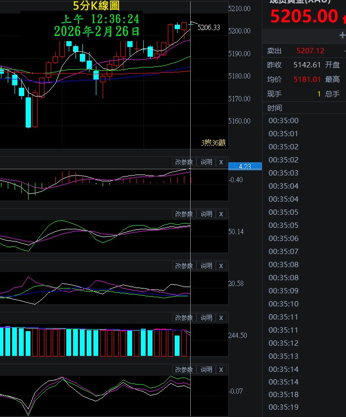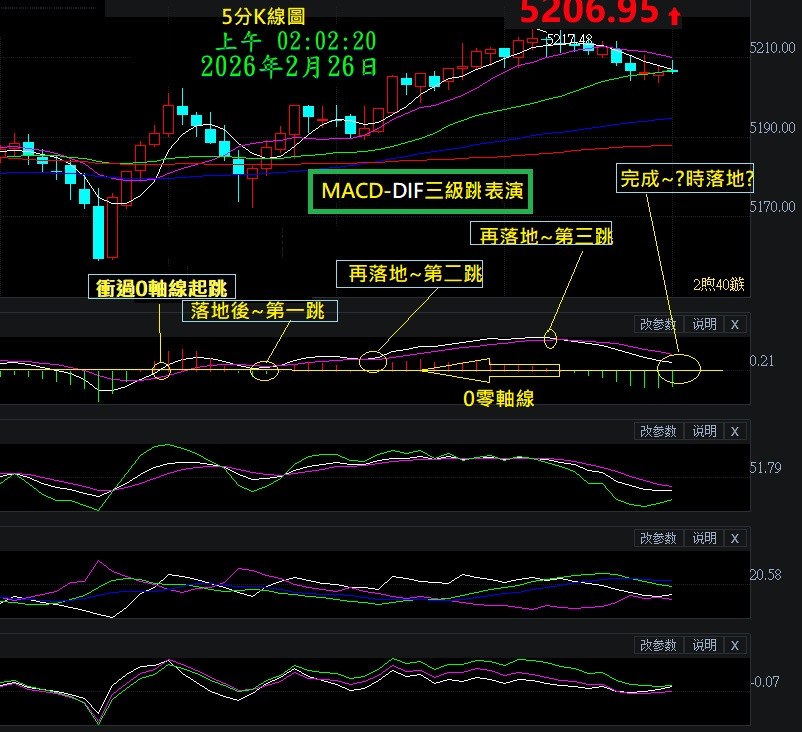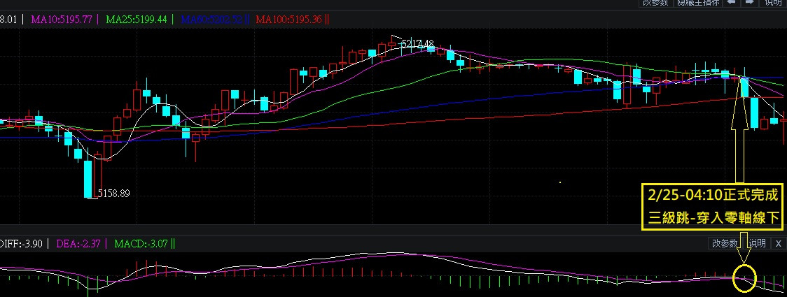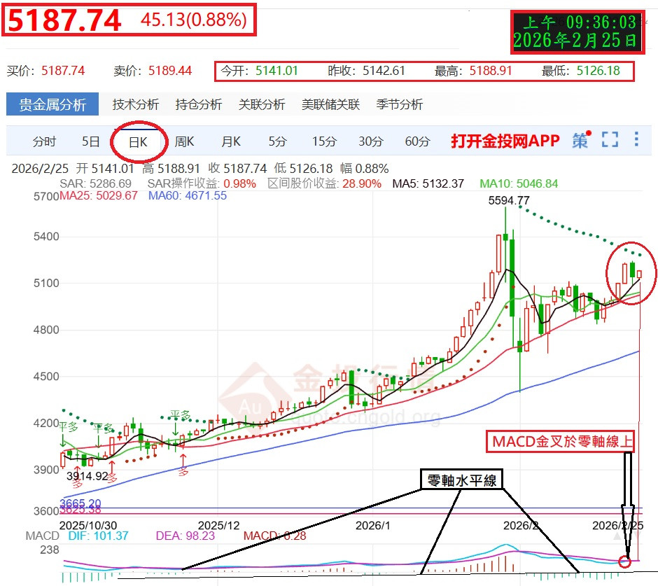 OOO~>黃金大盤於2026.02.25=04:10完成MACD~(DIFF)三級跳行情表演