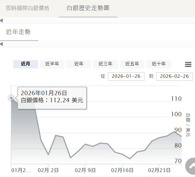 昨天白銀收盤價93,距離之前122還有不小的距離。表示實體白銀需求雖然強勁,但也沒有到斷崖式爆漲的程度。至於未來中期走勢,我個人還是看好的,所以實體白銀要抱緊一點。