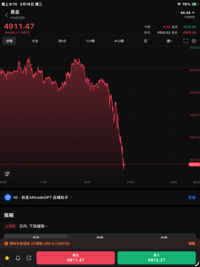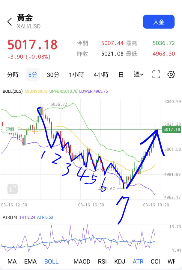 這週很不穩,黃金價格要謹慎,不要追漲📈殺跌📉,我個人感覺5000美元地板有可能會被壓破了😭,被石油跟美元害到了😡...