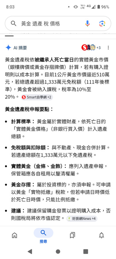 24樓・意思是說如果在台銀登記買500g黃金只要沒有報稅售出記錄等子女要繼承不管實體在不在子女手上就是都要課現值500g的遺產稅?