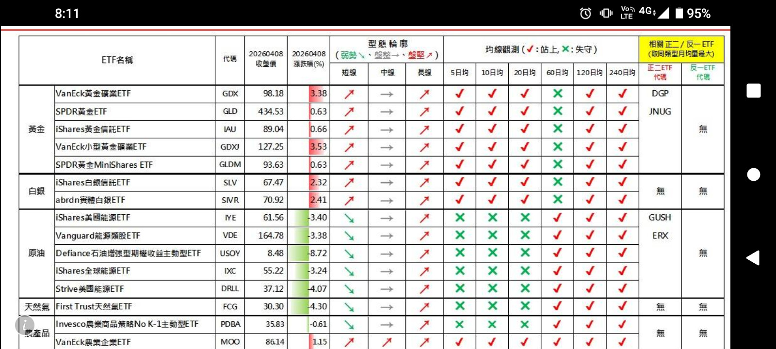 4/9台銀黃金存摺-上/下午盤-報價表