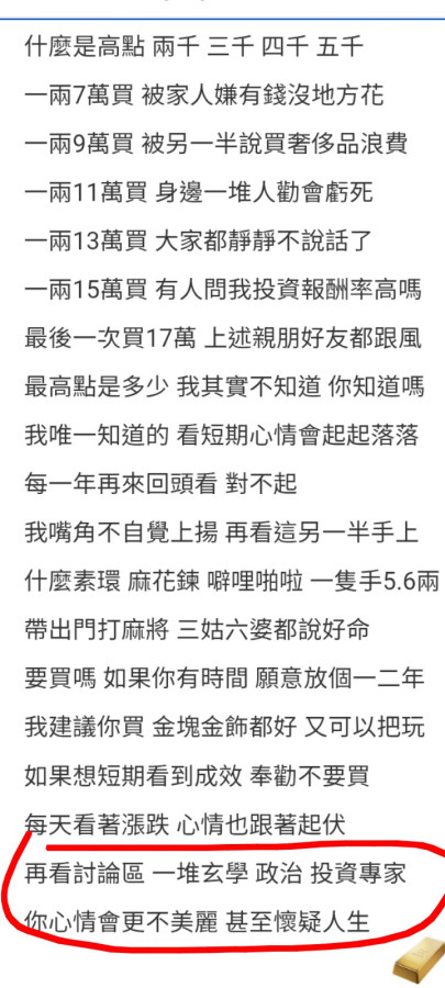 法國這招可以借鏡參考,考慮加入個人存紙黃金買賣策略,紙金一直存存存.........,順著節奏於金價高點賣出,一路滑鐵盧滑滑滑.........,再於金價相對低點部位接回紙金,獲利部份改買實體黃金。
